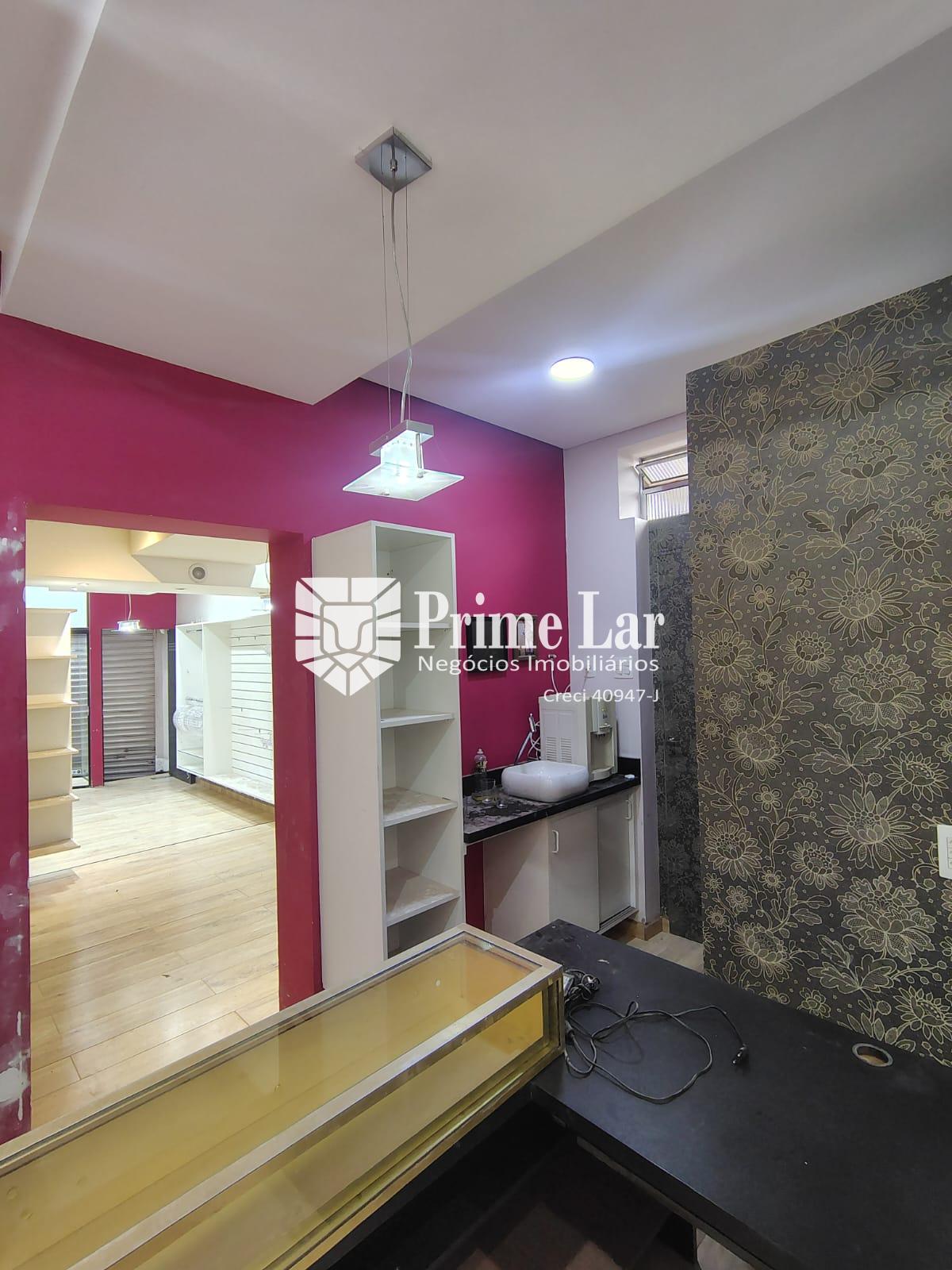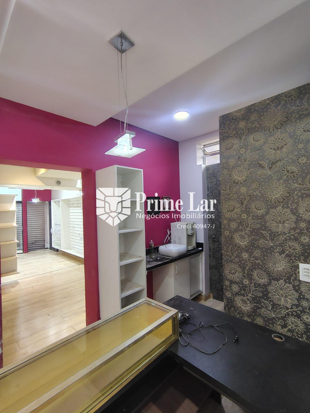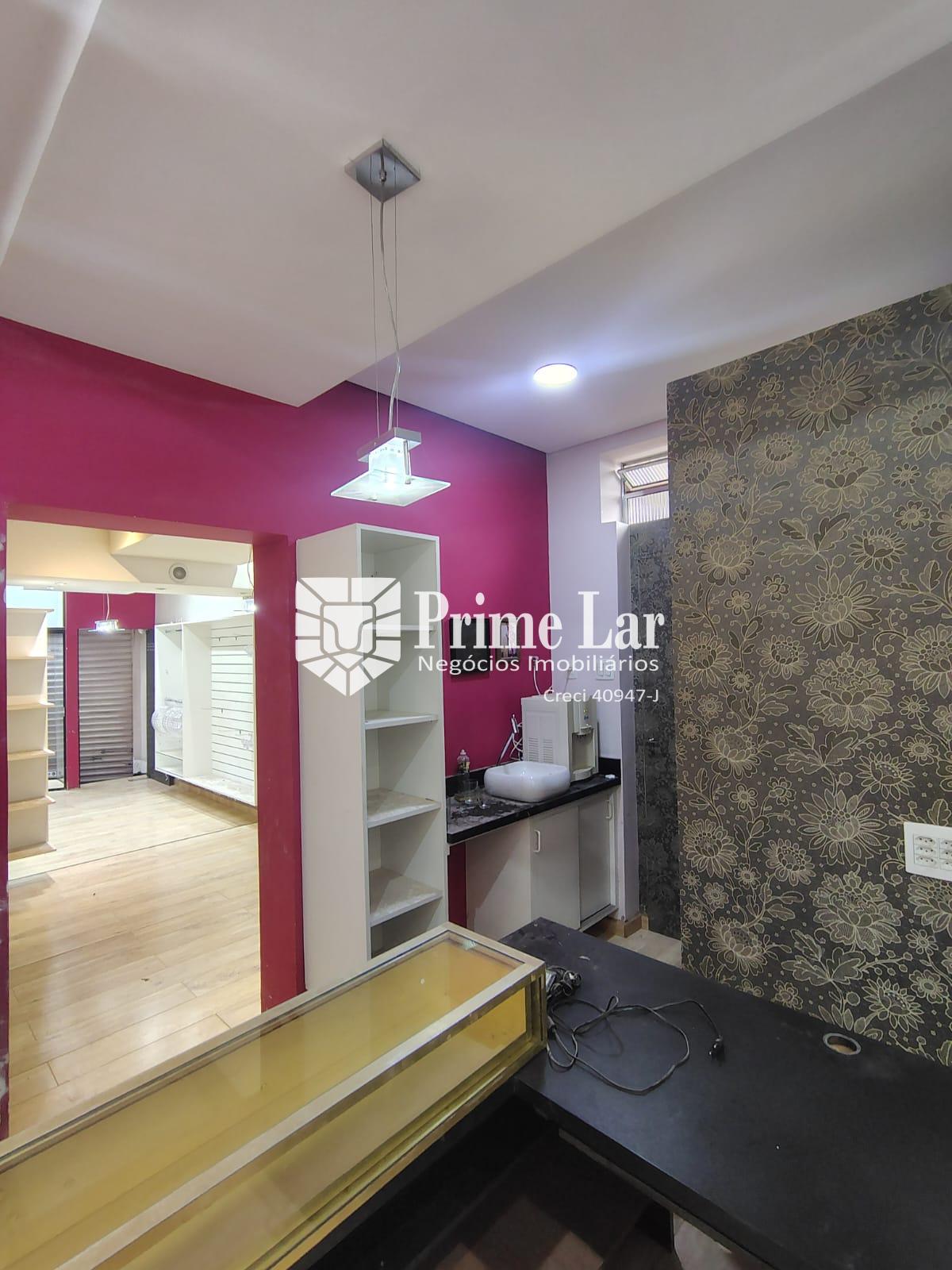 Loja com móveis, que pode ser alugado com ou sem móveis, tem vitrine, dois provadores, com iluminação inteligente e porta volátil, sala pequena para depósito, sala do fundo com cozinha e banheiro.