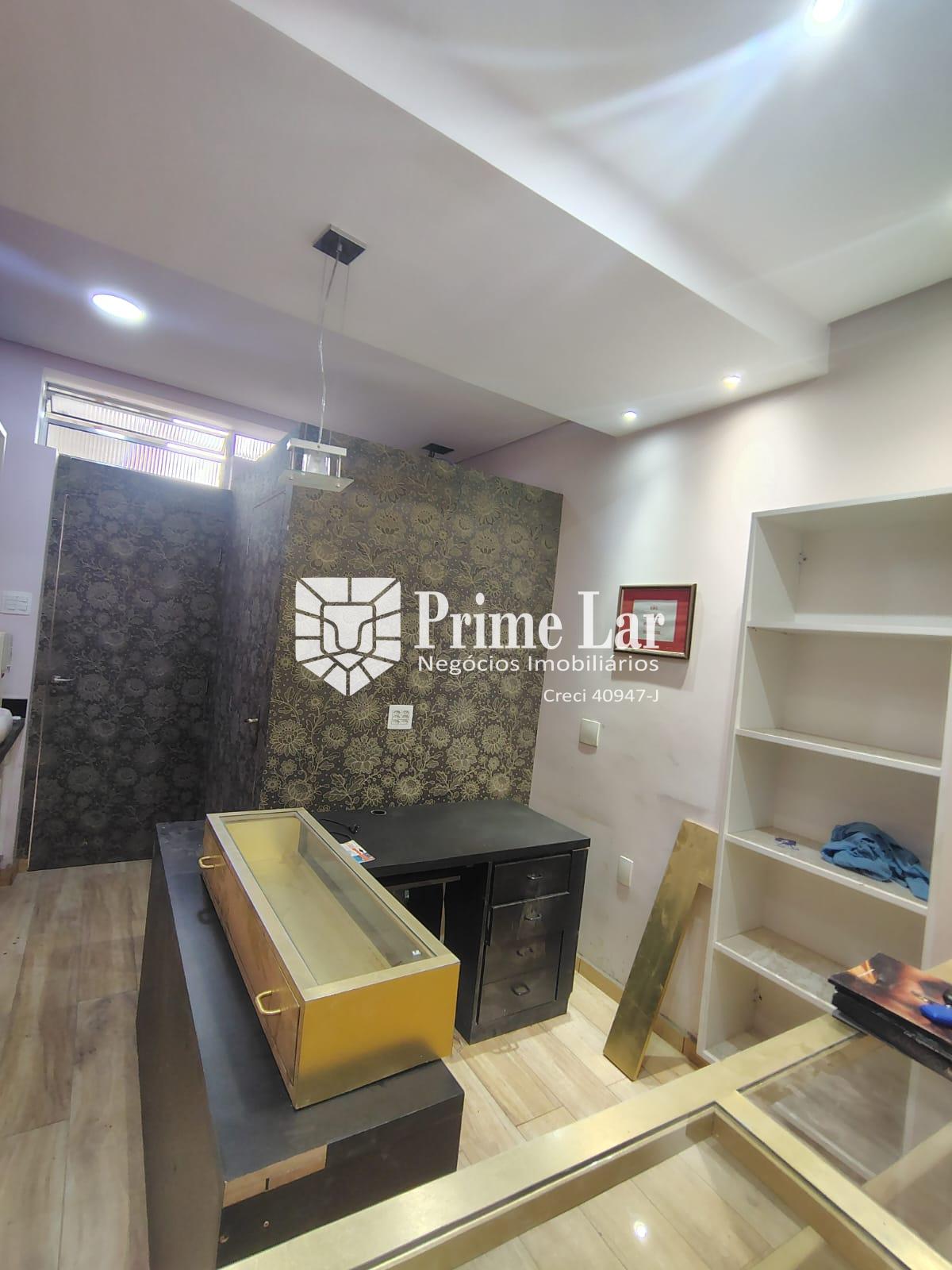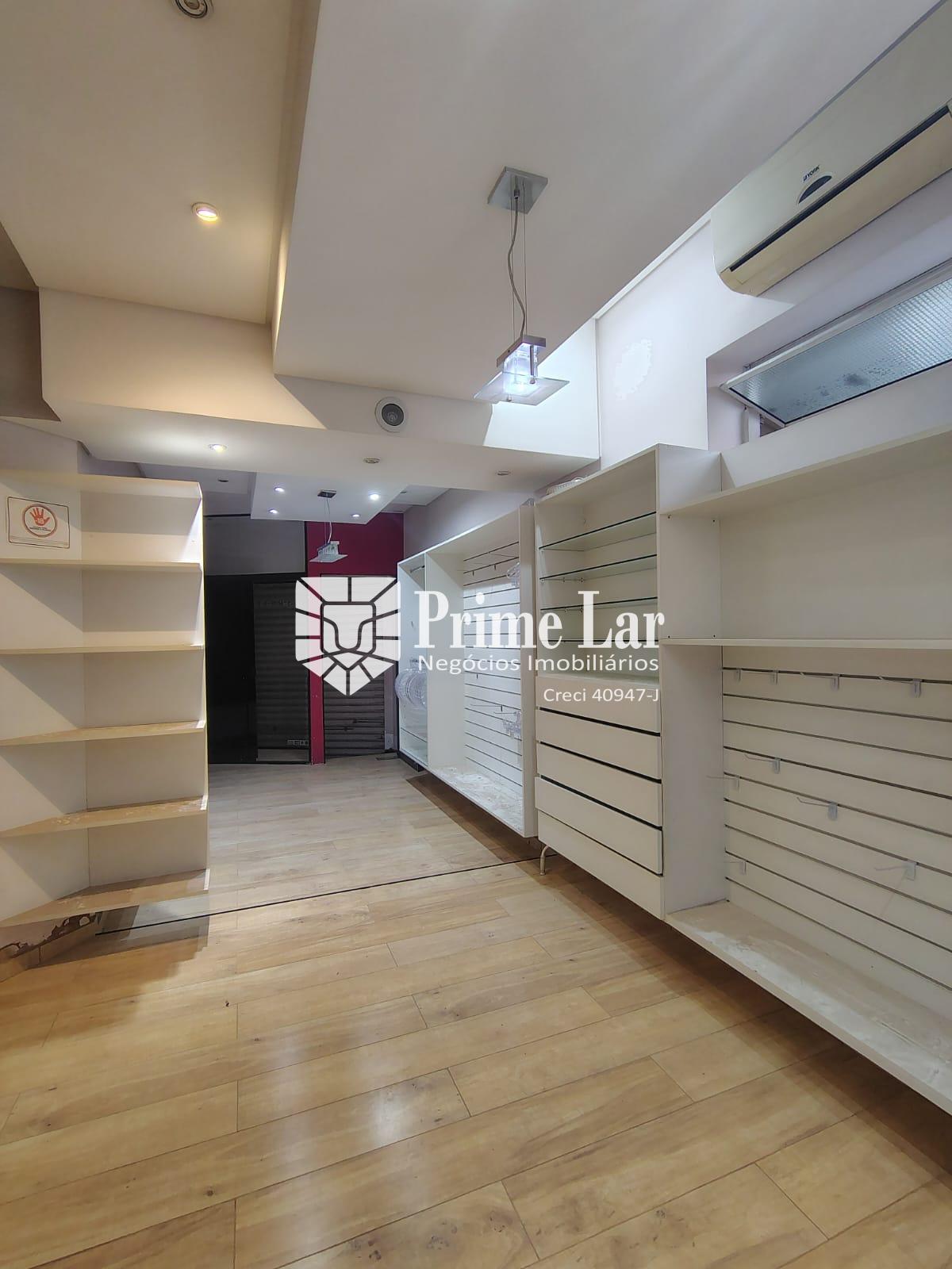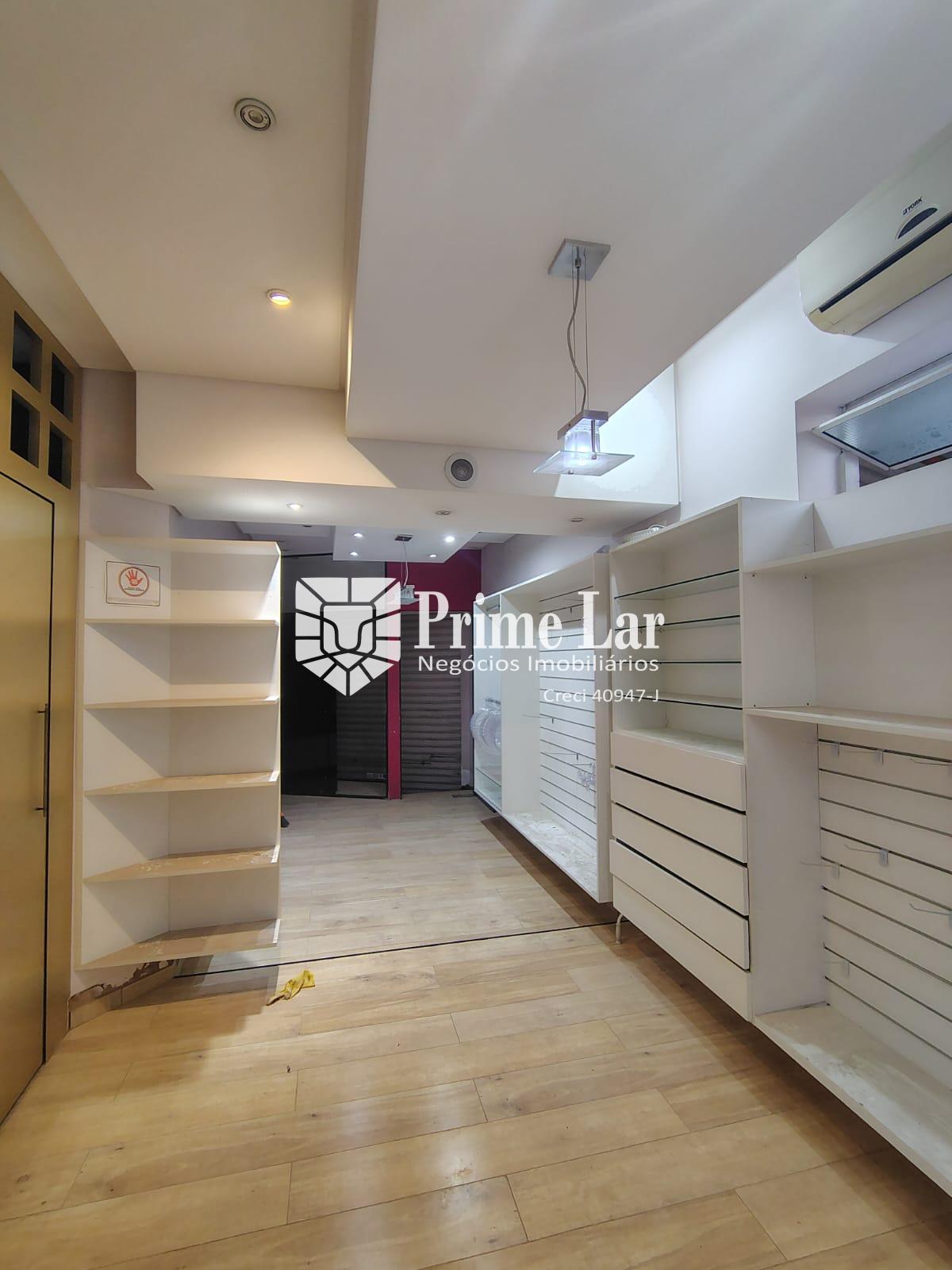 Loja com móveis, que pode ser alugado com ou sem móveis, tem vitrine, dois provadores, com iluminação inteligente e porta volátil, sala pequena para depósito, sala do fundo com cozinha e banheiro.
