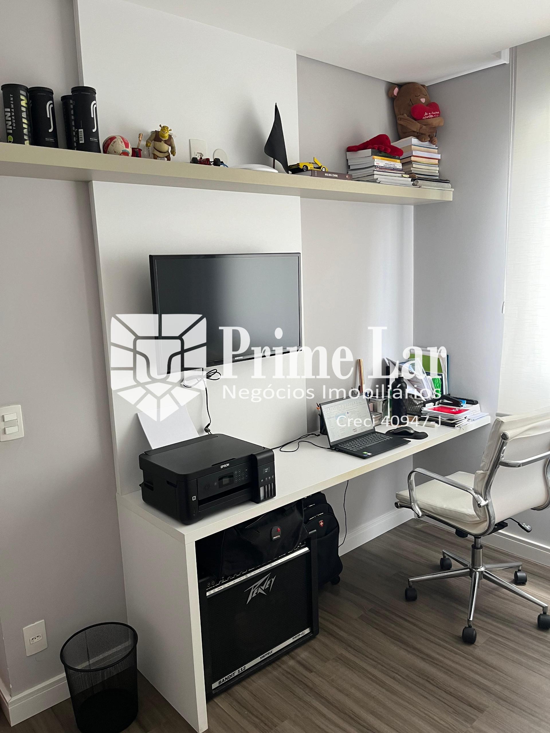 Lindo apartamento com sol da manhã nos quartos e sala, e sol da tarde na varanda, possui 2 suítes, sala ampla, cozinha, lavabo, varanda gourmet envidraçada com churrasqueira a gás, 2 vagas demarcadas em garagem coberta, acabamento de alto padrão (Portobello, Portinari..), quartos com piso vinílico, móveis Planejados de alto padrão (Fabrilis), teto da sala de TV com estrutura para falantes de Home Theater, porta de entrada em madeira maciça e portas internas semi-ocas.
